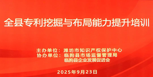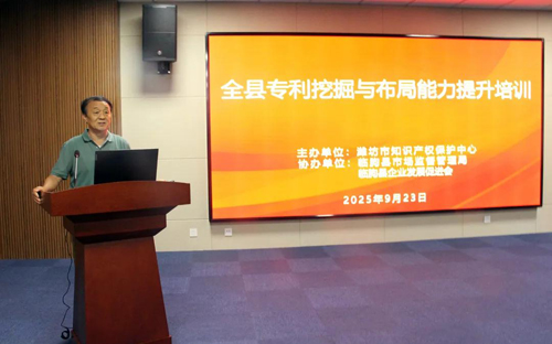 由潍坊市知识产权保护中心、临朐县市场监管局联合县企业发展促进会共同组织的“助企攀登”专利审查员齐鲁行潍坊站重点活动——全县专利挖掘与布局能力提升培训班,在临朐国际会展中心圆满举办。
